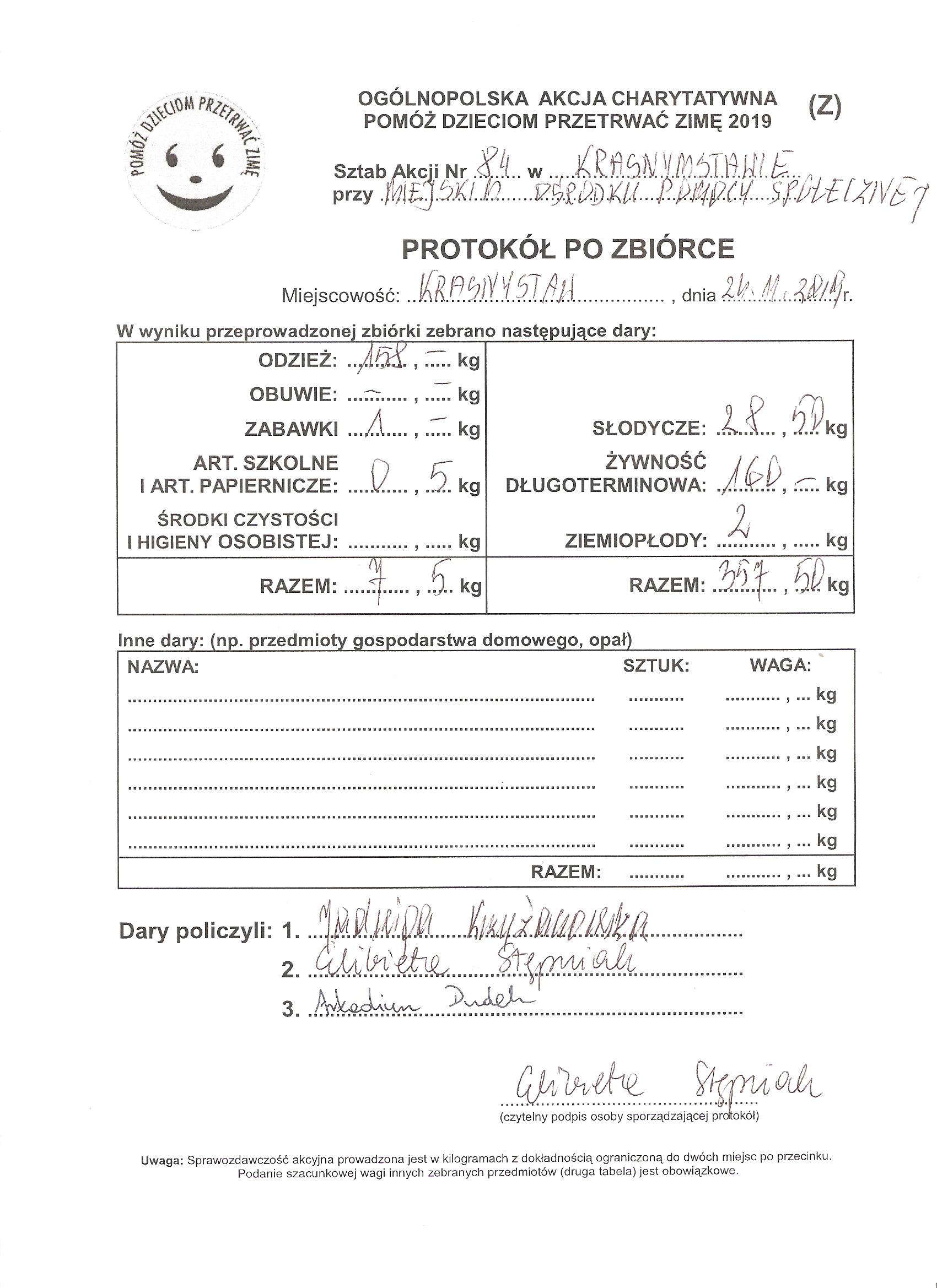 Po zbiórce w MOPS Krasnystaw (s84) przez JBK · Opublikowano 24 listopada 2019 · Zaktualizowano 28 listopada 2019 w załączeniu przesyłamy protokół Udostępnij